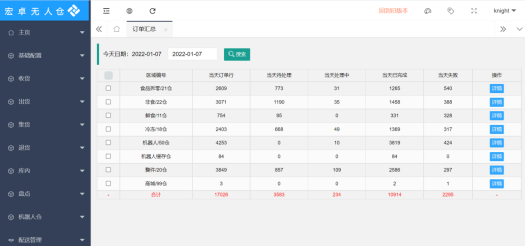 以仓储管理流程(包含出入库,库内作业,订单处理,配送等)为主要框架,通过移动工作站前台,管理模块中台,数据算法后台等先进技术,并对接上层业务系统及底层智能硬件,实现仓储物流的全流程数字化管理。
