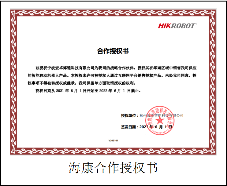 o 2021年成为海康智能科技授权合作伙伴,可集成海康机器视觉硬件及相关应用技术。